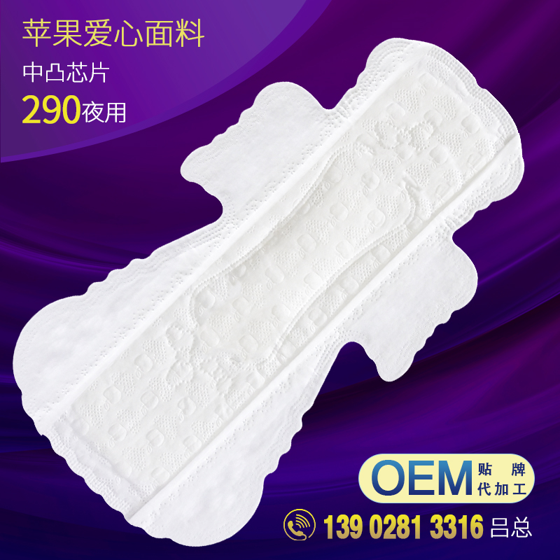 名称::苹果爱心面料中凸芯体290夜用卫生巾