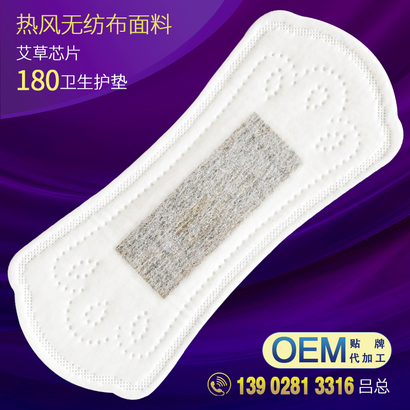 热风无纺布面料艾草芯片180卫生巾护垫